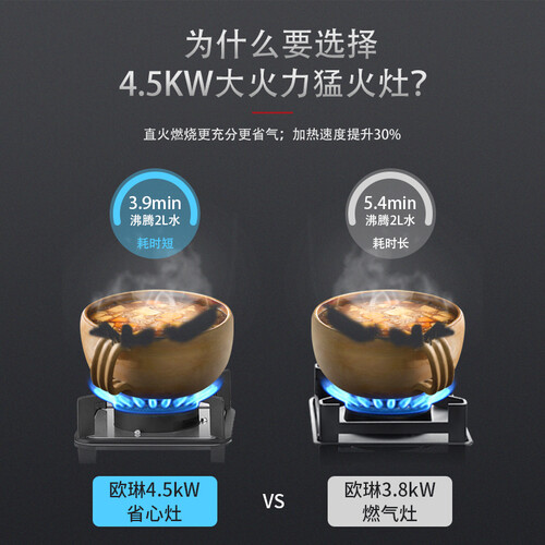 63%的热效率,有效节省煤气用量,让你放心开大火烹饪,为你节省日常开销。点火快速,无需多次按压数秒开火,省时便捷。