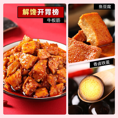 具有16包卤味小食,简直可以作为零食柜的夜宵清单。有荤有素的搭配,闭着眼挑都很好吃,采用老汤陈卤,只有地道的甜辣口。