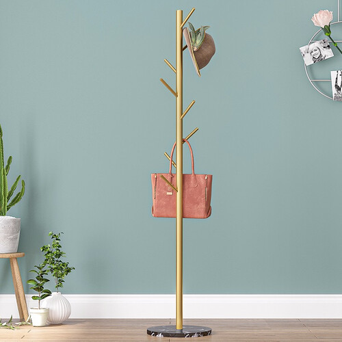 大理石底座的设计,光滑细腻,纹理自然,将其沉稳大气显示出来。树状型挂钩顶部经过了圆滑处理,挂衣服不伤手。