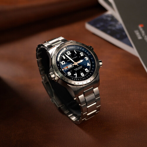 梦幻般的深蓝盘面,数字指针设计更加醒目,内置H-21机芯,可提供60小时动力储备,摆轮桥上的雕花图案,承载匠心。