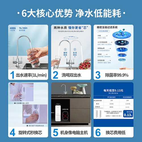 支持不同的净水模式,减少滤芯耗费,按照需求匹配。选用无双酚A材料打造水路,有宝宝的家庭也可以放心使用哦。