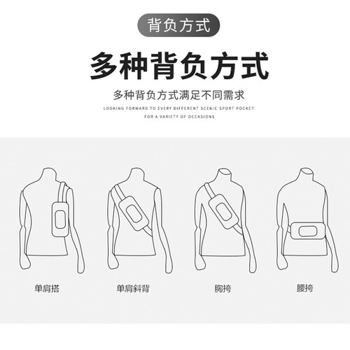 可以前背也可以后背。单肩斜跨造型,满满时尚酷感。前背有效保证财物安全,后背舒适方便,尽显帅气身影。