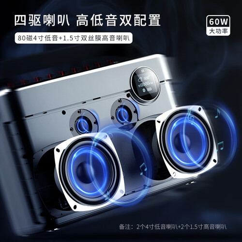 音箱采用了LED高清显示屏,能让连接、电量等一目了然,操作更方便。DPS音效处理技术,音质更丰富浑厚,音乐体验更震撼。