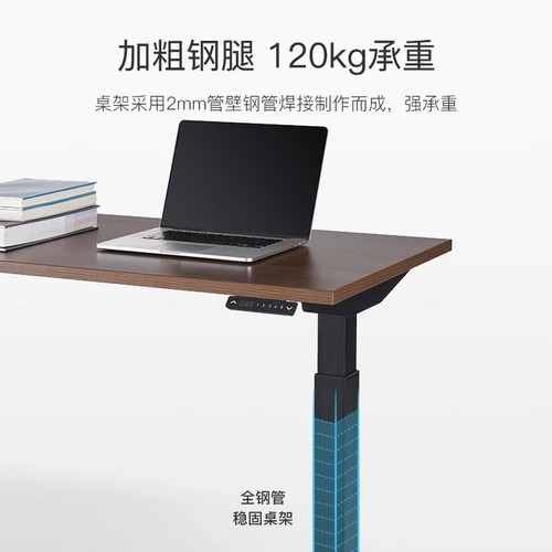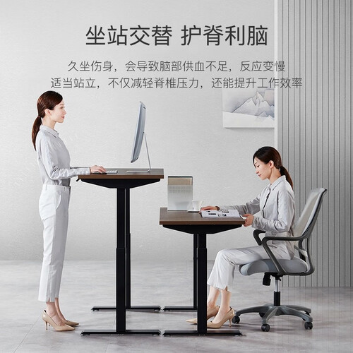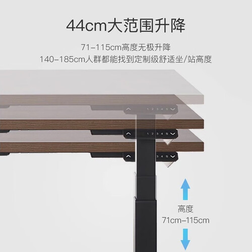 双电机驱动,升降又快又稳,最低处升到最高处仅需12秒,放置水杯无晃动。降噪电机,升降过程声音低于打字声音。