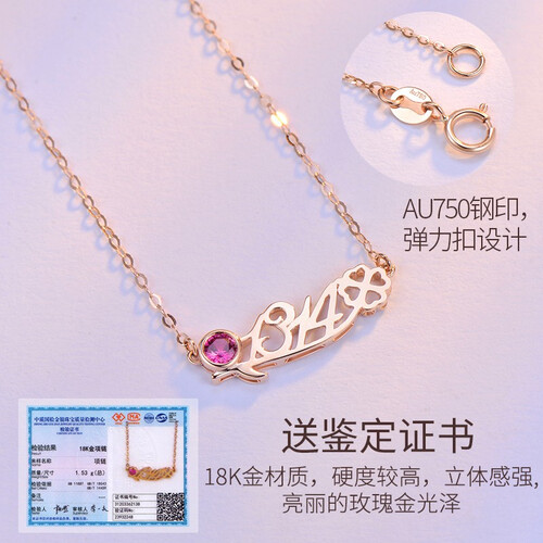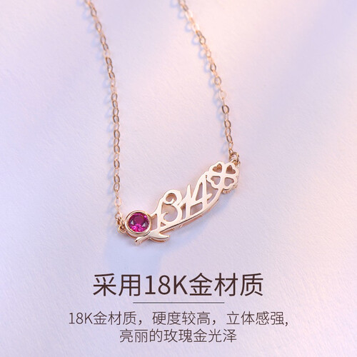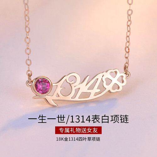 18K金的材质,硬度高立体感强,采用1314和四叶草的设计,凸显了项链一生一世、幸运的寓意,是表白可选的贴心礼物。