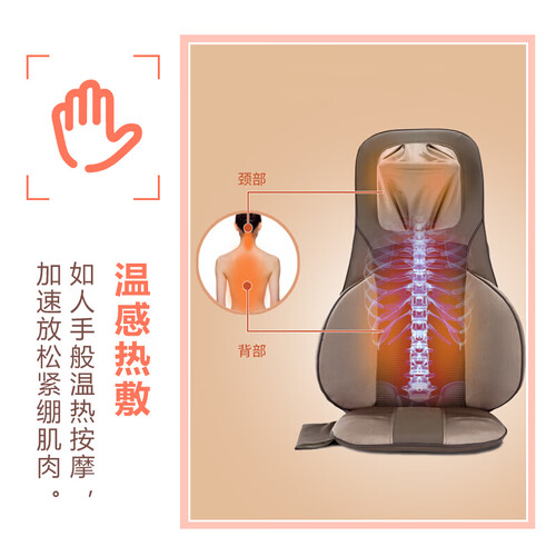 按摩器设计温感热敷功能,促进血液循环,加速放松紧绷肌肉。选用网布材质制作的表层,具有较好的透气性,告别闷热困扰。