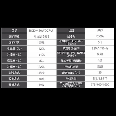 卡萨帝420升十字对开门冰箱