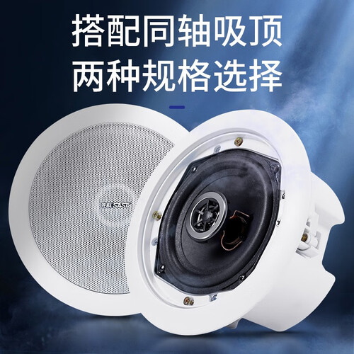 吸顶音响采用嵌入式设计,与墙面紧密贴合,释放家居空间,提升家居格调。内置高端定阻音响,打造立体环绕覆盖式音效。