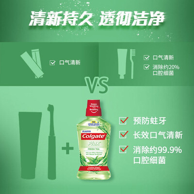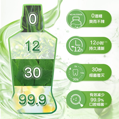 含有FX冰感因子,可以快速释放冰爽力,让清新更持久;漱口水中添加了氟元素,可以坚固牙龈,更好的预防蛀牙。