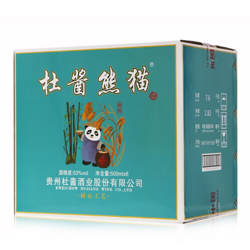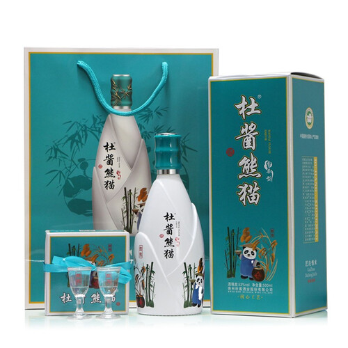 源自贵州茅台镇,经过制曲、下沙等多道工序制成,酒体丰满醇厚,酒香四溢。瓶身以熊猫、竹子图案点缀,清新可爱。