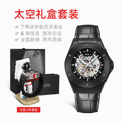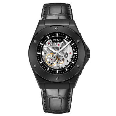 ZEMO经典酷黑黑皮腕表