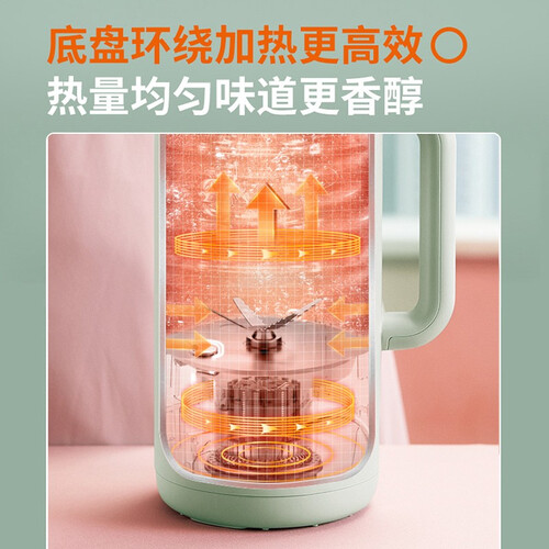 这款多功能研磨豆浆机,底盘环绕加热熬煮设计,食物味道更加香醇。食品级不锈钢的内腔设计,触感丝滑细腻,不粘更易清洁。