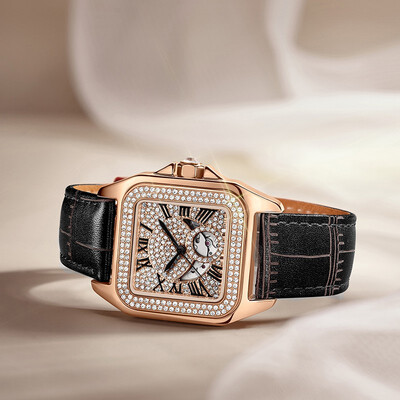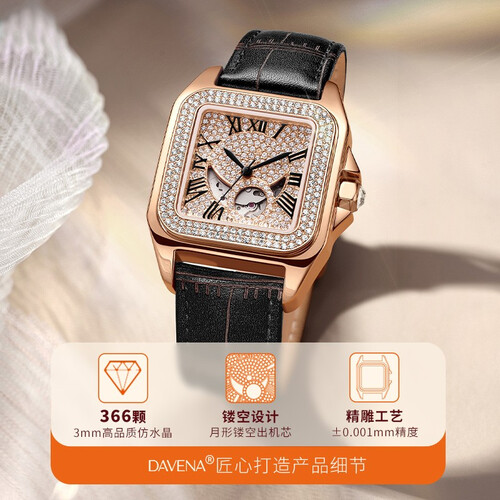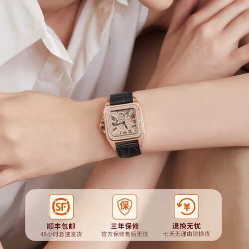 专门运用精细的雕刻工艺,水晶不容易掉落,绽放持久的光芒。背部采用透视底盖设计,可以洞悉机械的律动,感受时间的流逝。