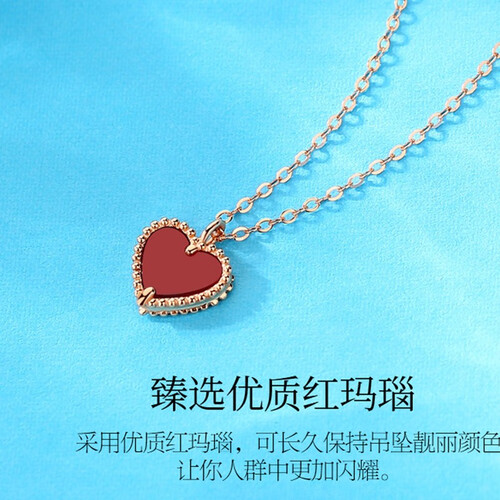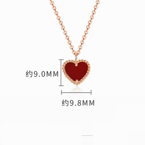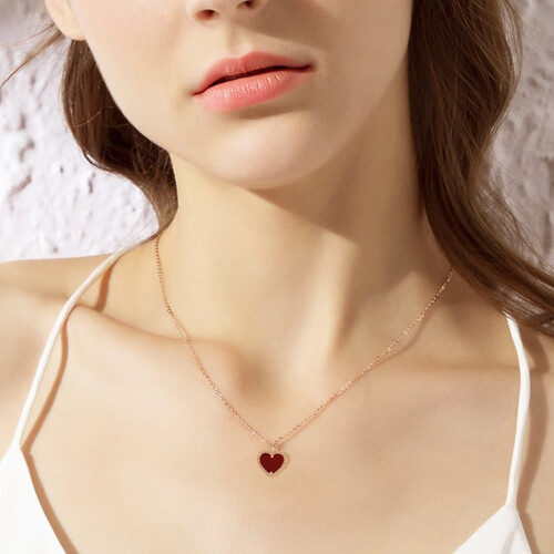 采用红玛瑙制作吊坠,材质晶莹透彻,持久保持亮丽净色。爱心配搭珠边吊坠,样式精美灵动,佩戴气质大方。