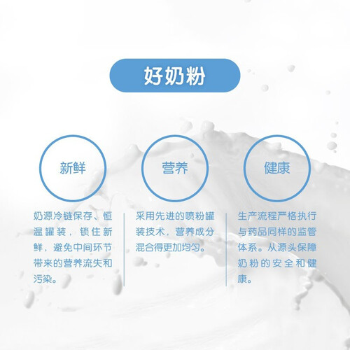 源自天然牧场奶源,自然条件得天独厚,奶质更加浓香纯正。粉质细腻纯净无杂质,品质上乘看得见,入口倍感鲜润。