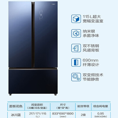 503升储鲜空间,采用对开三门风尚设计,左冷藏右冷冻,底部宽幅变温区,简洁大气。搭载纳米银离子发生器,实现净味健康保鲜。