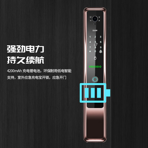 内置高清视屏猫眼,室内屏幕显示图像,室外情况清晰可见,结合大功率红外夜视灯,即使漆黑的楼道也能看清。