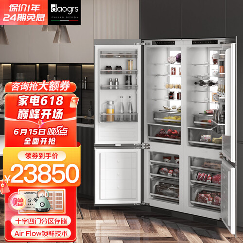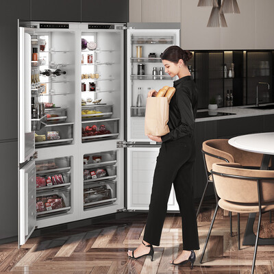 512升的容量,能够储存多种食物,且便于分类,日常拿取食物更加方便。多开门的设计,简洁大气,时尚有型。