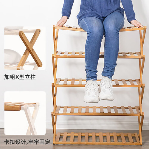 木马人 竹质免安装 鞋架