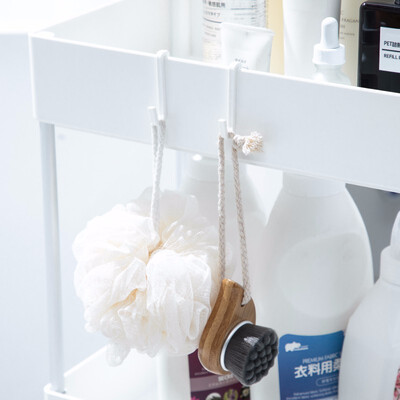 侧面带有双挂钩设计,方便挂取小型物品,灵活运用收纳空间;采用万向轮设计,带有刹车装置,移动轻松且放置平稳。
