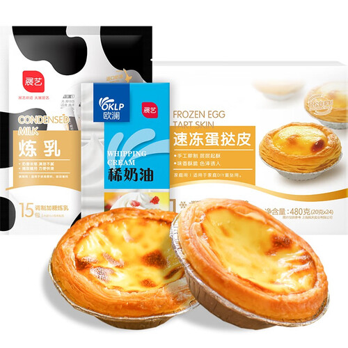 这款蛋挞皮含有多个套餐,除了基础的蛋挞皮之外,还添加了淡奶油和蛋挞液。采用了手工制作方式,使得口感更加酥脆香甜。