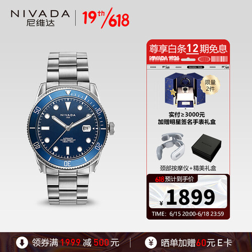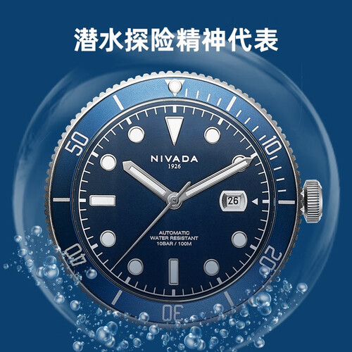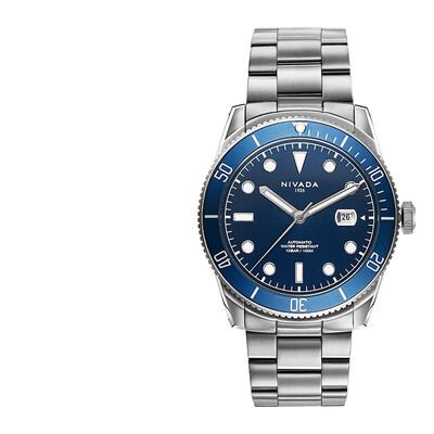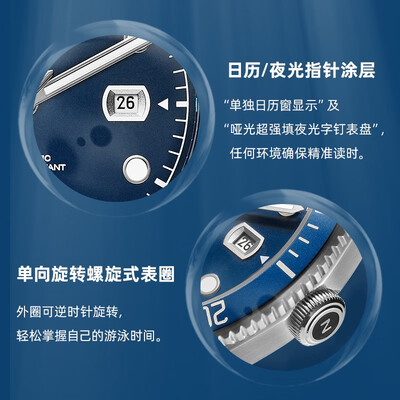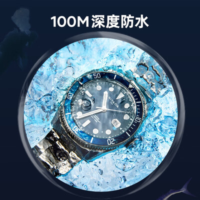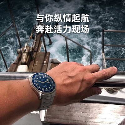 具有100米深度防水的功能,带来了潜水的性能。蓝色的表盘设计,梦幻迷人,搭配精钢编织表带,佩戴感舒适。