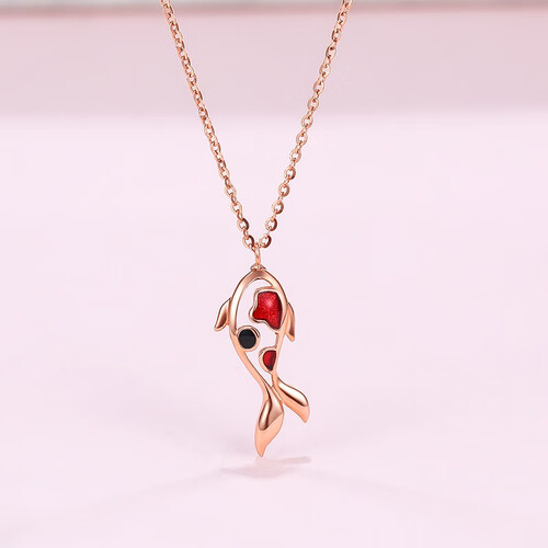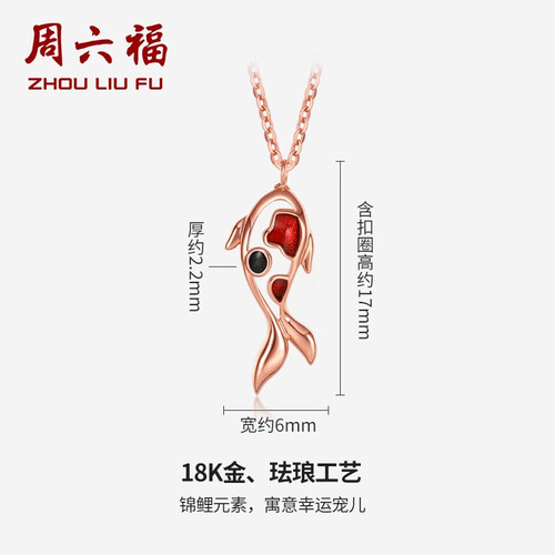 镂空锦鲤链坠,灵动可爱,加以红色和黑色珐琅点缀,色彩靓丽丰富,惹眼吸睛。18K金材质制作,坚硬且不易变形。