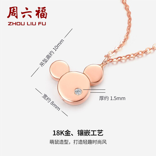 卡通鼠造型,可爱萌趣,青春活力,释放童心。精选18K金材质,硬度高,结实耐用且延展性好。
