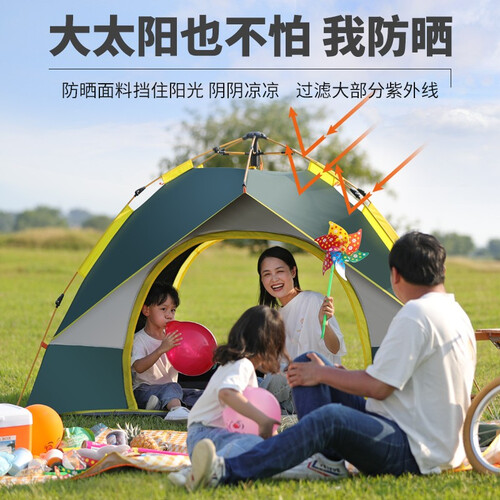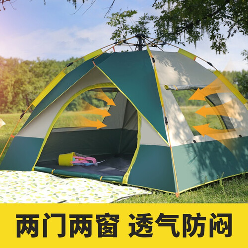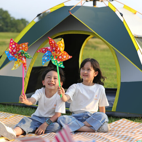 高强度的玻璃纤维杆搭配10cm的地钉,强风天气也可以稳固支撑。两门两窗的组合设计,可以增强内部空气的流通。