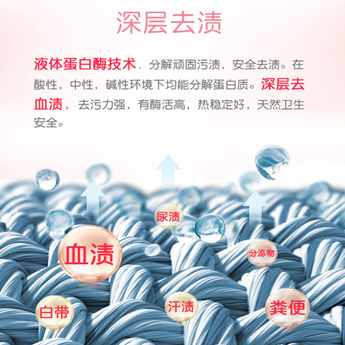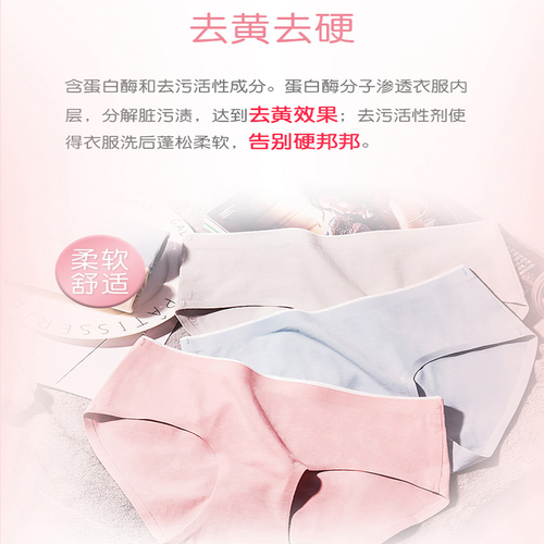 蛋白酶搭配活性去污因子,可除污去黄软化纤维,令衣物洗后不僵硬。还蕴含植物灭菌成分,能为衣物深度除菌,持久保持洁净清新。