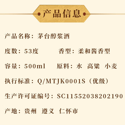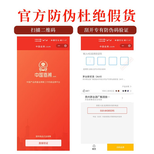 这款柔和酱香型白酒,入口顺滑,口感醇厚绵柔,散发酒香气味。瓶身带有防伪二维码,扫描即查询信息,方便辨别真伪。