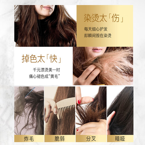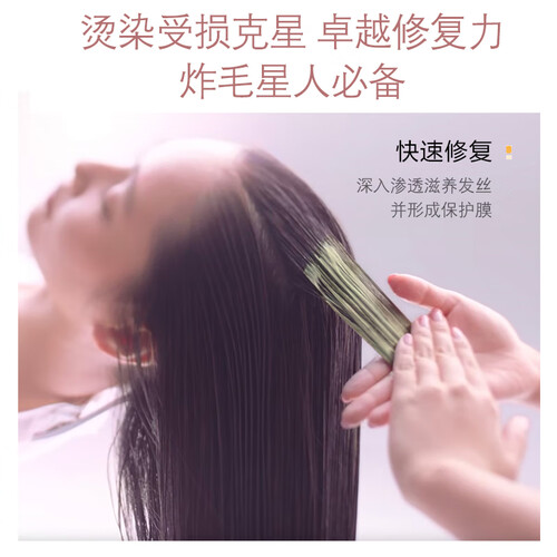 水润滋养修护配方,融合了多种植物水解蛋白,可以深层修护因烫染及恶劣环境下等原因导致的秀发损伤问题。