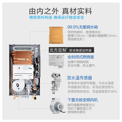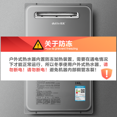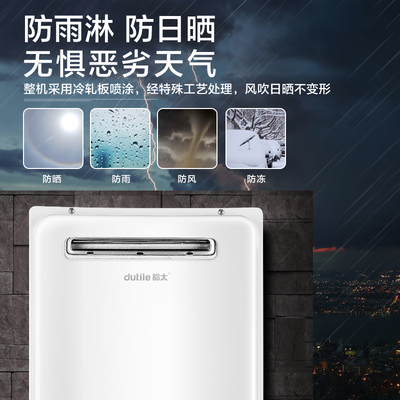 内置陶瓷加热体,风雨雪天气,也能燃烧稳定充足,防止被冻坏。室外安装排烟,绿色空间,老人孩子安心洗浴。