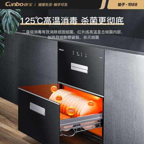 采用100L容量设计,空间充足,满足多套餐具清洁存放需求。高达二星级消毒标准,有效杀灭多种细菌,呵护家人健康。