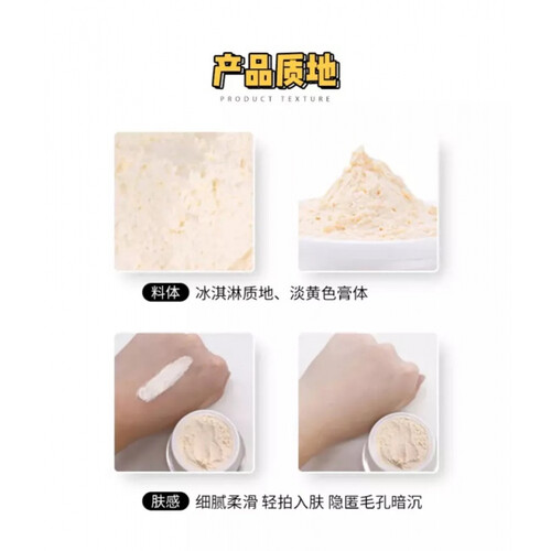 膏体细腻柔滑,抹后顷刻细化毛孔,帮助打造细滑肌感。含有珍珠提取物,能够有效提亮肤色,让脸颊变得白净清透。