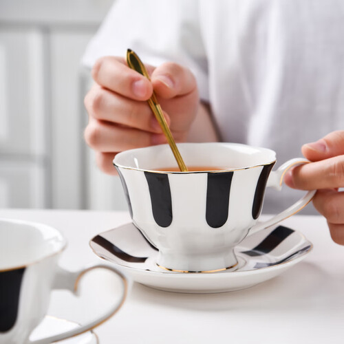 咖啡杯设计十分人性化,手把为C型,不仅握感舒适,还能有效隔热隔烫,同时茶壶有卡口设计,倒水时无需按住壶盖,使用方便。