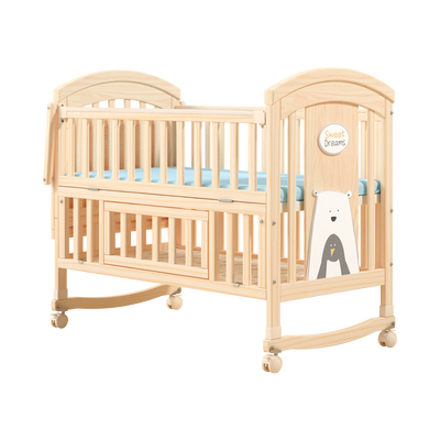 这款婴儿床没有经过喷漆处理,使用更加健康环保。采用进口松木材质,木材更加坚固,表面光滑,承重性更强。
