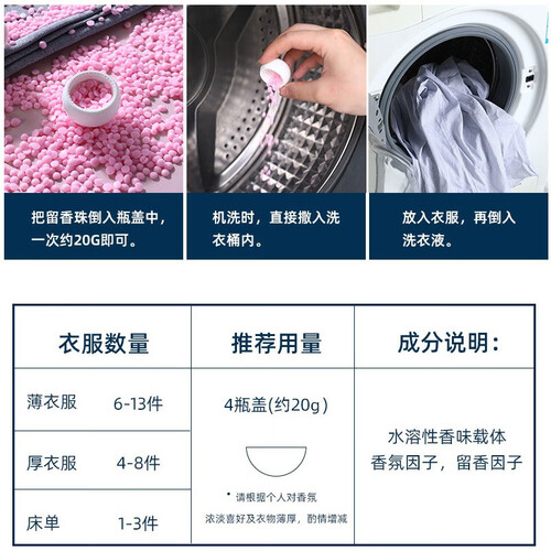 这款留香珠采用了柔顺因子,能够预防衣物变得粗糙干硬,令衣物柔软顺滑。并且蕴含植物成分,不含荧光剂,亲和肌肤。