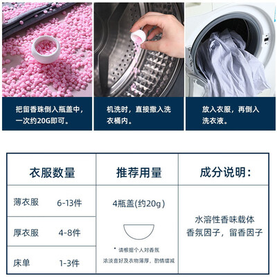 蕴含天然植物成分,打造出非常清甜的花果香调,随着衣物的每一次摩擦,不断释放。搭配留香珠洗后的衣物可减少静电,衣物更柔顺。