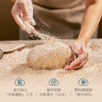 多次循环研磨麦粉,没有粗糙口感。超长时间发酵,松软绵密不掉渣。饱满厚实,严控油和糖,好吃不担心发胖。
