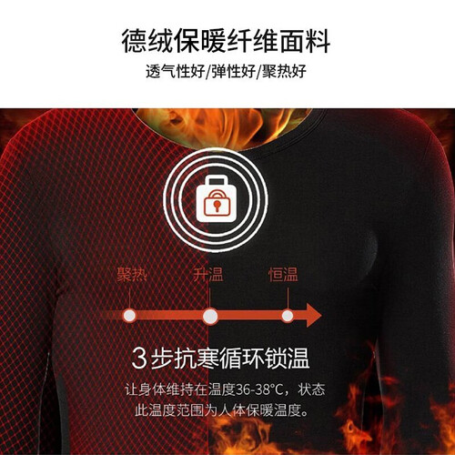 采用自发热材质,能够升高体温,令体温维持恒定状态,舒适升级,抵御寒冬。无痕剪裁设计,内搭穿不显痕迹,可维持男性体面形象。