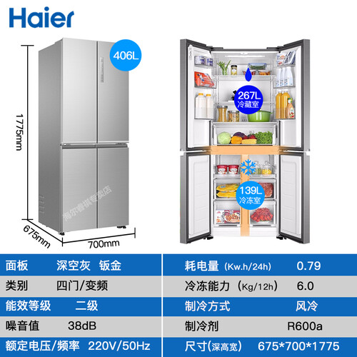 海尔变频节能对开门冰箱