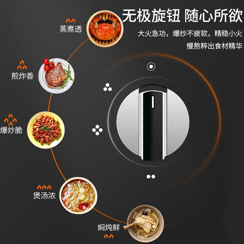 720°的球形加热技术,均匀加热不挑锅型不糊锅底。无极旋钮设计,火力可无限调节,爆炒不疲软,慢熬小火稳。