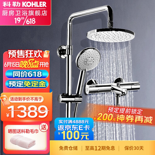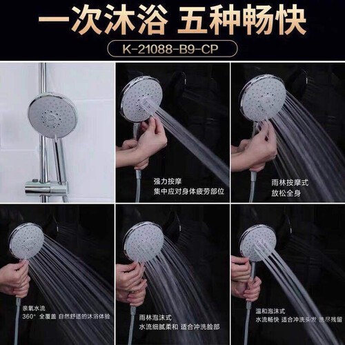 科勒三出水花洒套装提供如雨淋般的沐浴,选用大顶喷设计,黄金出水孔分布,打造舒适水流体验。精制加工,缔造美学设计。