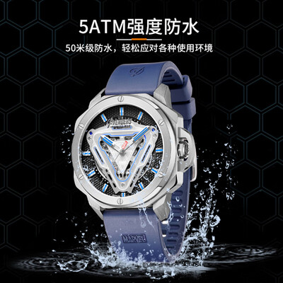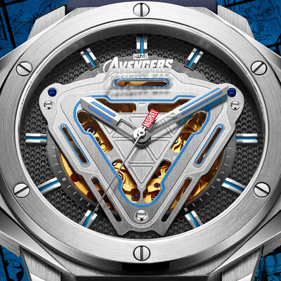 漫威迷不能错过的一款手表,设计灵感来源于钢铁侠的能量反应堆。采用精钢316L材质为原料,能够很好的防腐蚀。