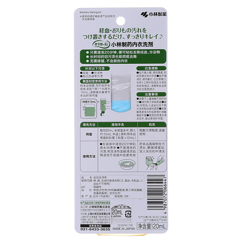 专门为女性内衣内裤打造的洗衣液,是生理期的福音,轻松溶解血渍。成分呈弱酸碱性,不损害皮肤的同时,去污能力好。