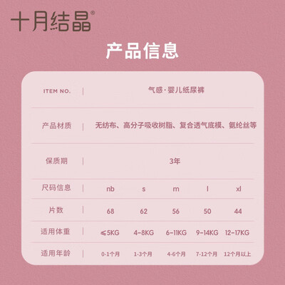 表层采用双层热风无纺布,更加亲和宝宝肌肤,不刺激更加温和;8层鲸吸结构设计,可以更好地吸收尿液,无需勤换。