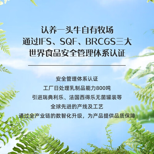 具有优质牧场,各个步骤严格把控,带你享受纯粹自然的美味。盒式包装,易于携带,使你随时随地想喝就喝更加方便快捷。