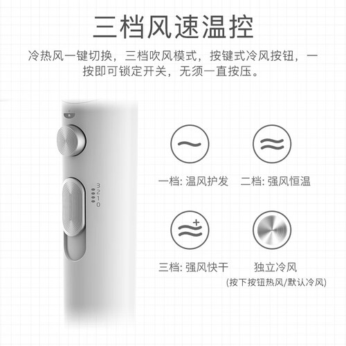 采用防护式入风网,有效防止发丝及吸尘卷入,进风顺畅,使用安全不伤发。三挡吹风模式,一键切换操作简单。