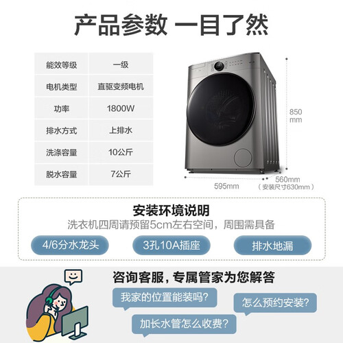 第五代直驱变频电机,通过磁悬浮直接驱动,减少了摩擦,运行更安静。微蒸汽空气洗程序,可以放心洗涤羽绒服。